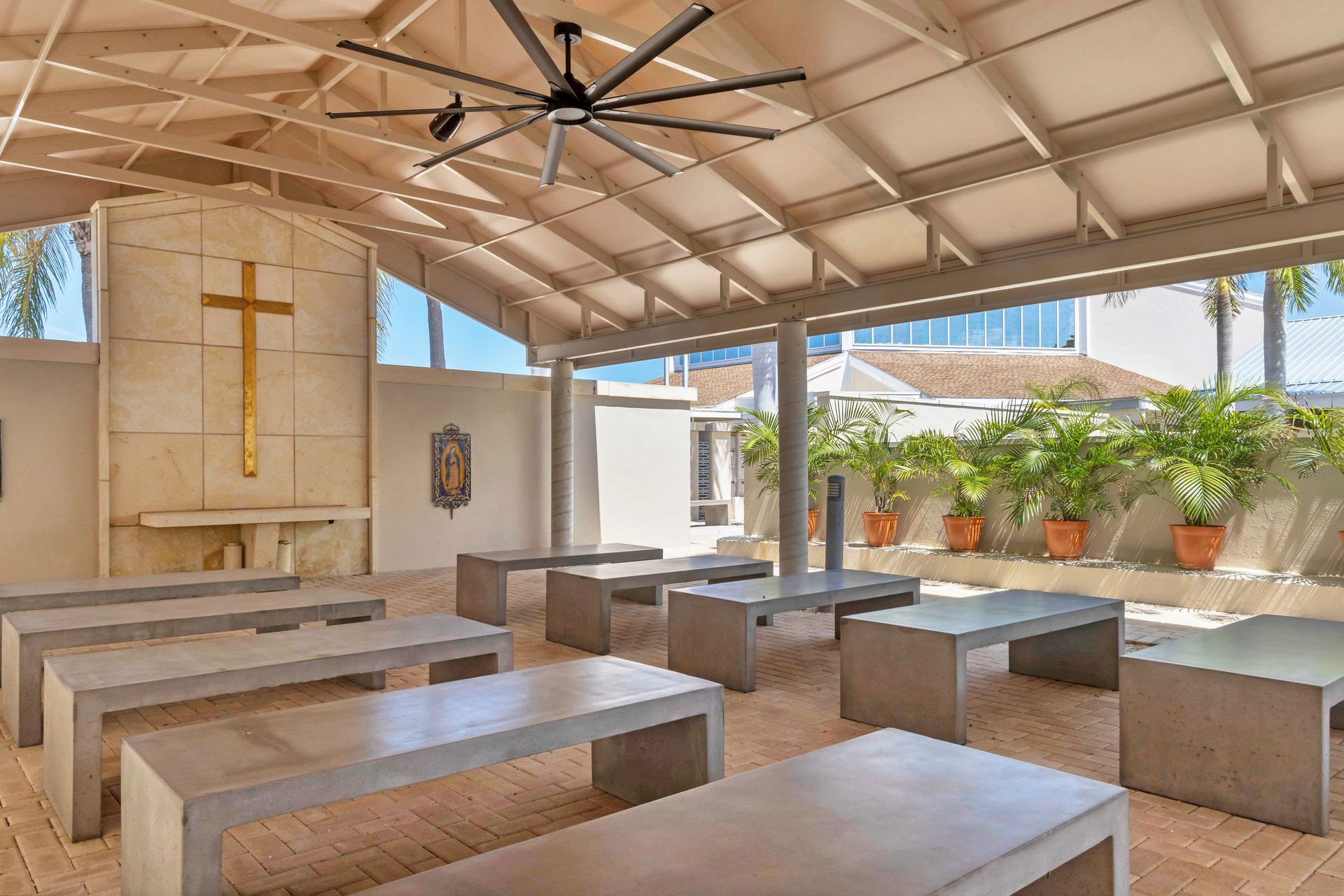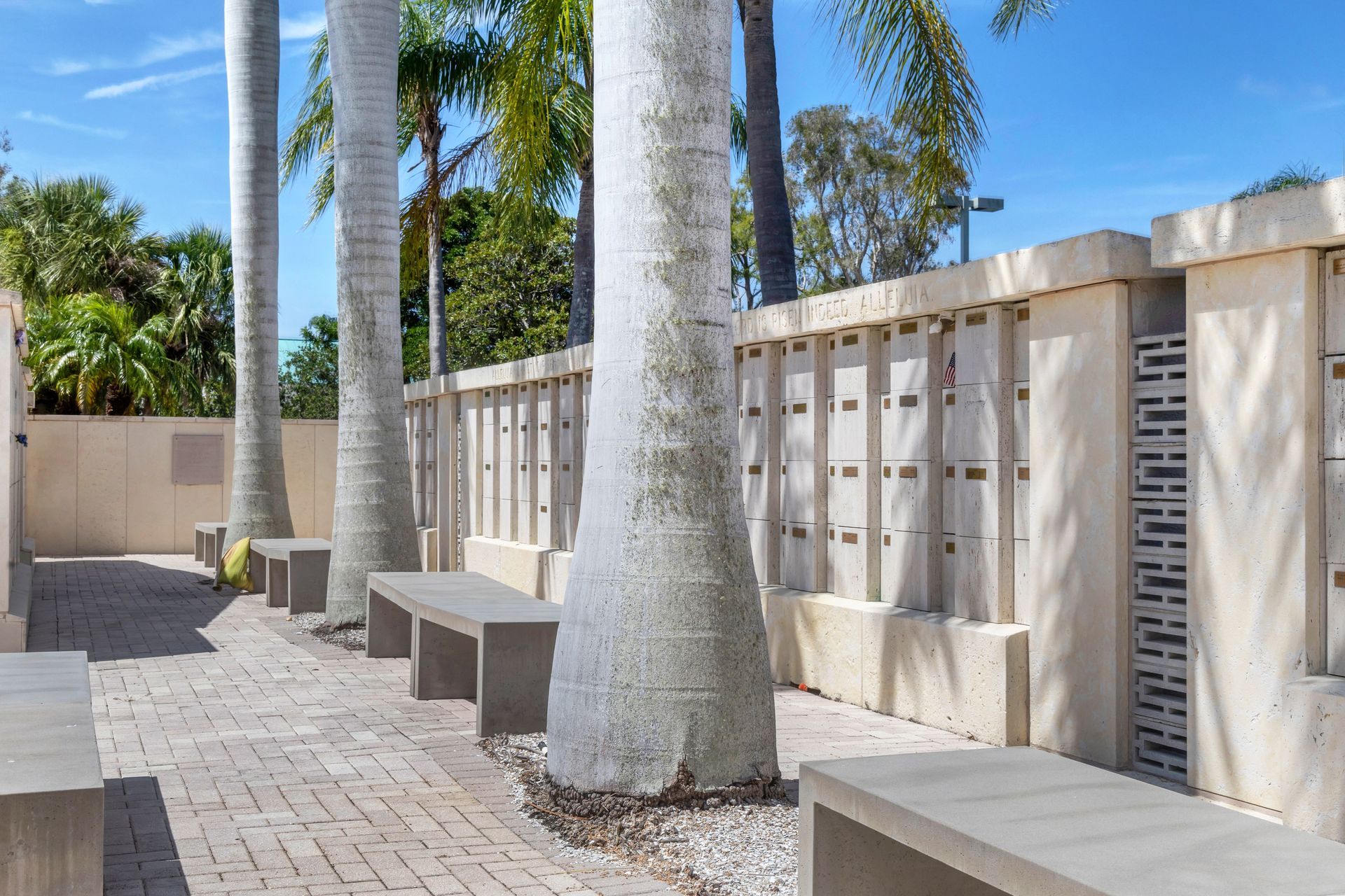 The Columbarium which surrounds the courtyard chapel is a beautiful final resting place for urns containing ashes. Niches are available in two sizes, depending how many urns you intend to place. A standard bronze urn is available for $375.